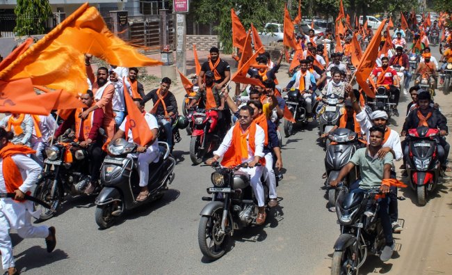 வட இந்தியாவில் ஆர்எஸ்எஸ் கும்பல் தொடர்ச்சியாக பரப்பிவரும் ராமபஜனை, பெரும்பான்மை மக்களின் மூளையை மழுங்கடித்துள்ளது. இதனால் கள்ளைக் குடித்த குரங்குபோல கண்ணில் பட்டவர்களைஉதைப்பதும், மசூதிகள், கட்டிடங்களில் ஏறி காவி கொடியை ஏற்றி உச்சியில் பறக்கவிடுவதும் தொடர்கதையாகி வருகிறது.