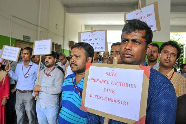 அதில் உச்சகட்டமாக ராணுவத்தை ராணுவ தளவாட உற்பத்தியை தனியாருக்கு தாரை வார்ப்பது என்று முடிவெடுத்தவுடன் ராணுவ தொழிற்சாலைகளில் பணியாற்றுகின்ற தொழிலாளர்கள் கடும் எதிர்ப்பு தெரிவித்தனர்.