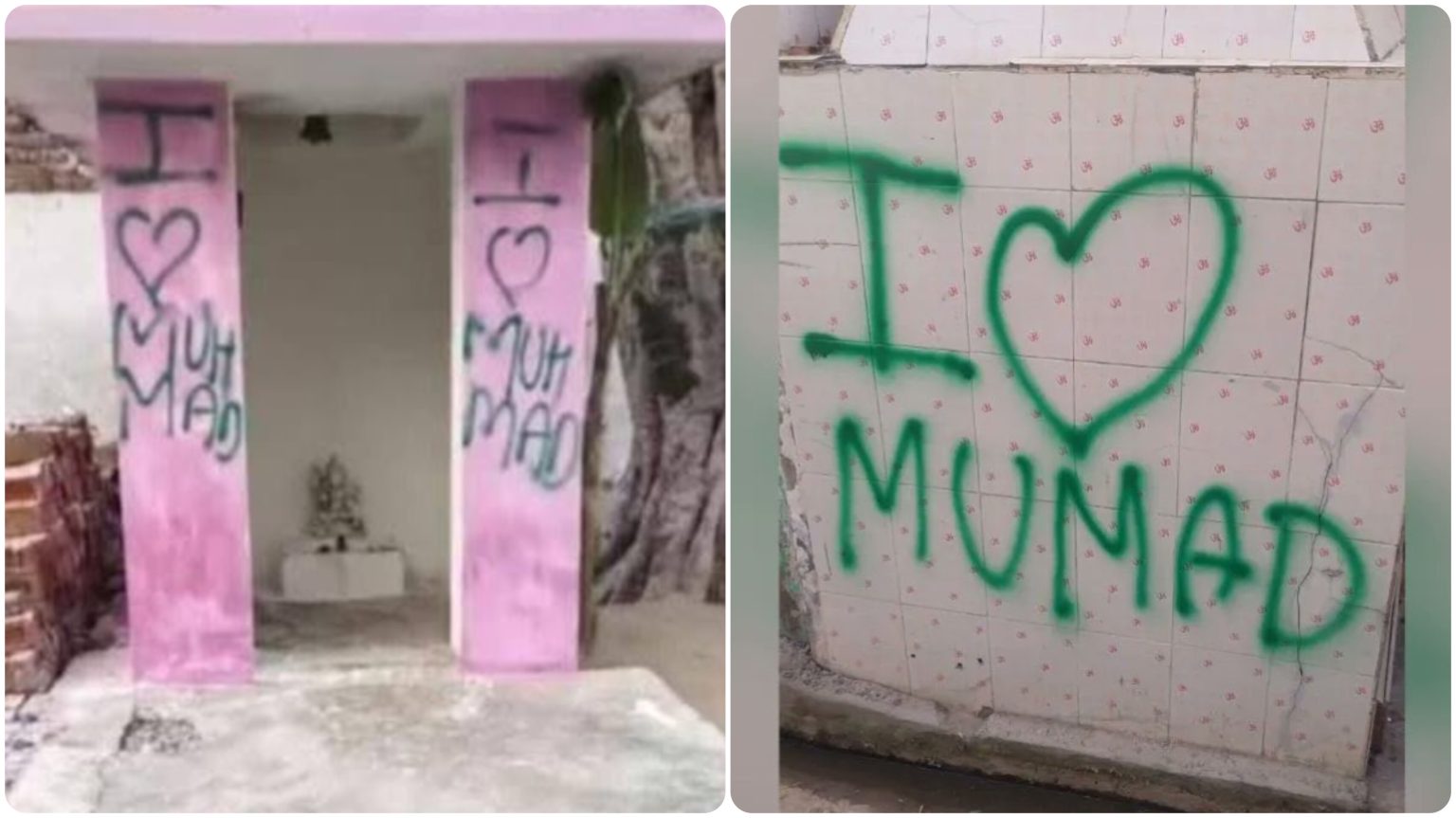 பாஜக ஆளும் உத்தர பிரதேச மாநிலத்தின் அலிகர் மாவட்டத்தில் உள்ள புலக் கார்கி கிராமத்தில் உள்ள இந்து கோயில்களின் சுவற்றில் “ஐ லவ் முகமது” என்று