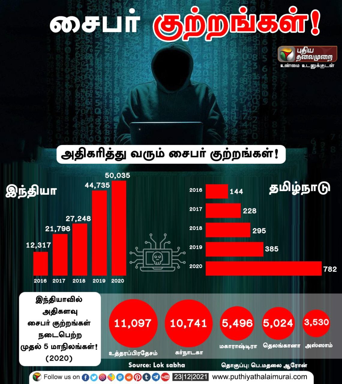 உலகம் டிஜிட்டல் மயமாகிவருகிறது. இந்தியாவும் டிஜிட்டல் மயத்தை விரைவுப்படுத்திக் கொண்டிருக்கிறது. இதில் டிஜிட்டல் குற்றங்களும் வருடந்தோறும் அதிகமாகி கொண்டே வருகின்றன. 2016-ல் 12317 குற்றங்களும், 2017ல் 21796 குற்றங்களும், 2018ல் 27248 குற்றங்களும், 2019ல் 44735 குற்றங்களும், 2020ல் 50035 பெருகியுள்ளன. ஐந்து ஆண்டுகளில் 400% அதிகமாகி இருப்பதை கவனியுங்கள். டிஜிட்டல் குற்றங்களுக்கு எங்கு, யாரிடம் புகார் தருவது என மக்களுக்கு புரிபடவில்லை. இந்த டேட்டாவை தருபவர்களே 99% டிஜிட்டல் குற்றங்கள் பதிவு செய்யப்படுவதில்லை. இந்த குற்றங்களில் குற்றவாளிகளை பிடிப்பதும், பணத்தை மீட்பதும் சவாலாக இருக்கிறது என்பதையும் சேர்த்தே சொல்கிறார்கள்.