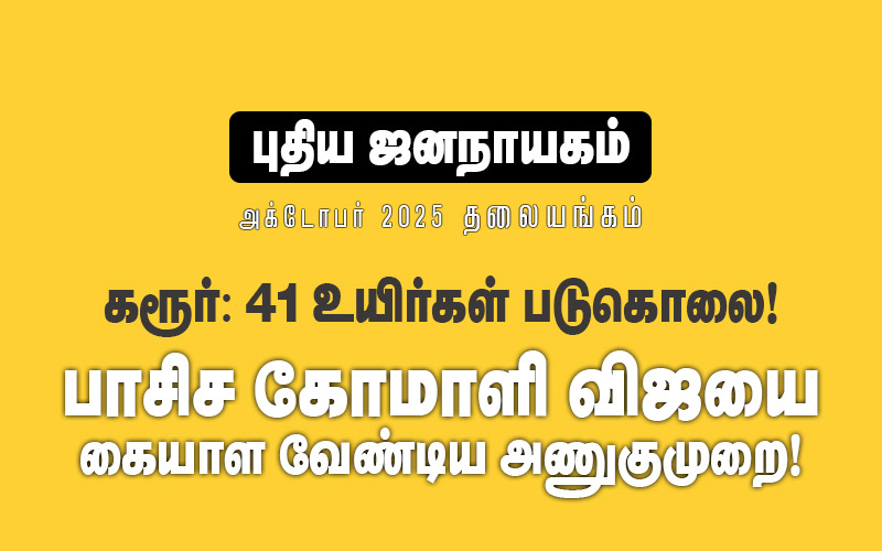 இத்தகைய அரசியலற்ற லும்பன்கள் கடந்த ஒரு மாத காலமாக பாசிசக் கோமாளியான விஜய் நடத்தி வருகின்ற கூட்டங்களுக்கு செல்வதில் கட்டுப்பாடுகளற்று திரிந்து கொண்டிருப்ப தால் ஒவ்வொரு கூட்டத்திலும் சாவுகள் நடப்பது சகஜமாகி வருகின்றது. இவையே உச்சகட்டமாகி கரூரில் 42 பேர் மரணத்திற்கு காரணமாக மாறியுள்ளது.