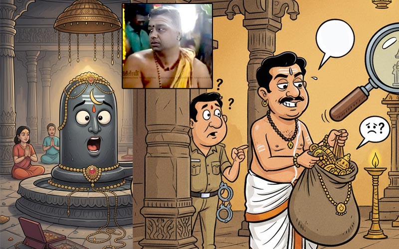 ஆகம விதிகளின்படி தான் கோவில்களில் அர்ச்சகர்கள் நியமிக்கப்பட வேண்டும் என்பதை உச்ச நீதிமன்றம் உத்தரவாக பிறப்பித்த போது அதனை அப்படியே ஏற்றுக் கொண்டு தலையில் வைத்துக்கொண்டு கொண்டாடிய பார்ப்பன கழிசடை ஊடகங்கள், செய்திப் பத்திரிகைகள் இதுபோன்று பார்ப்பன அர்ச்சகர்கள் கோவில் சொத்துக்களை திருடுவதையோ, பாலியல் ரீதியாக சீரழிந்து கிடப்பதையோ, பெண்கள் மீது பாலியல் வன்கொடுமைகளை நிகழ்த்துவதை பற்றியோ கண்டு கொந்தளிப்பது இல்லை.