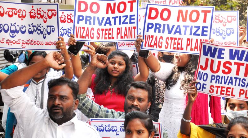 30,000 க்கும் மேற்பட்ட நிரந்தர மற்றும் காண்டிராக்ட் தொழிலாளர்கள் மற்றும் ஊழியர்கள், விசாகப்பட்டிணம் ஸ்டீல் ஆலையை தனியார்மயமாக்கும் மத்திய அரசின் முயற்சிக்கு எதிராக உறுதியுடன் போராடுகின்றனர்.
