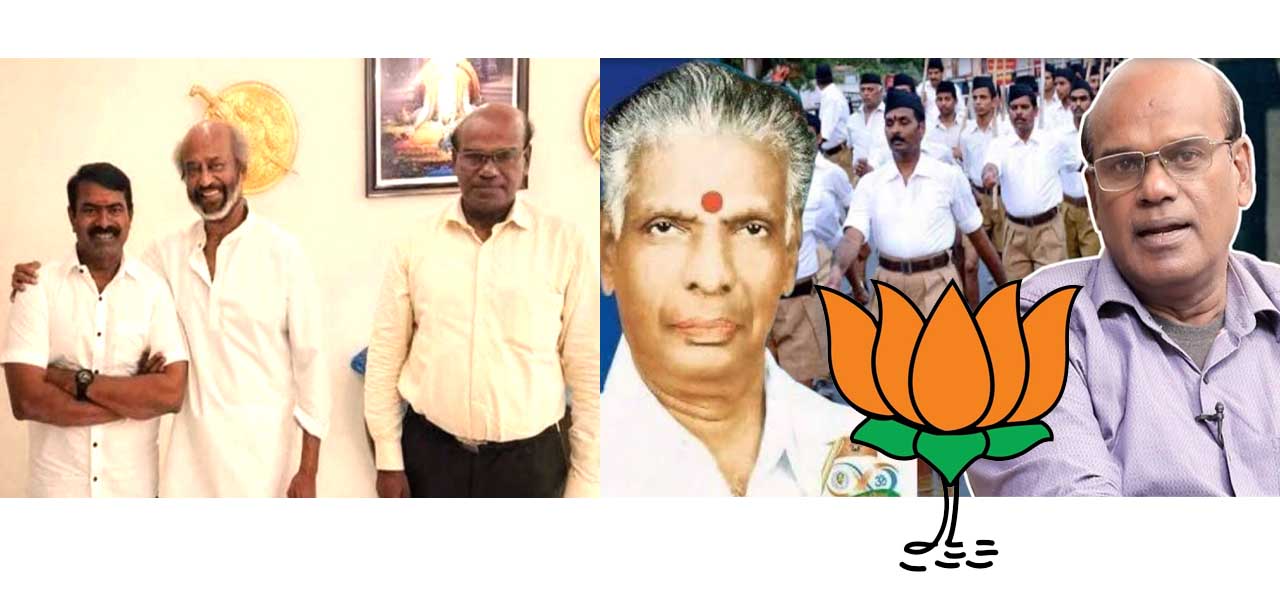 செபஸ்தியன் சைமன் சீமானும் நாடார்; இரவீந்திரன் துரைச்சாமியும் நாடார். அந்த மையப் புள்ளியில் இணைந்து தான், நடிகர் ரஜினியை சந்தித்து இருக்கிறார்கள்; ‘சங்கி மயமாகி’ இருக்கிறார்கள் – என்பதனை தமிழ்நாட்டு மக்கள் ஆழமாக உணரத் தலைப்பட வேண்டும்! நாம் சாதி ஒழிப்பை முன்னெடுக்க முனையும் பொழுது, அனைத்து மக்களுக்கு இடையிலான சாதி மத வேறுபாடுகளைக் கடந்த வர்க்க ஒற்றுமையை நிலைநாட்ட முற்படும்பொழுது இப்படிப்பட்ட இழிவான ஆர்எஸ்எஸ் காவி மயமாக்கலை வேரறுக்க வேண்டிய பாரிய கடமை நம் முன் இருக்கிறது என்பதனை அவசியம் தமிழ் மக்கள் உணர வேண்டும்.