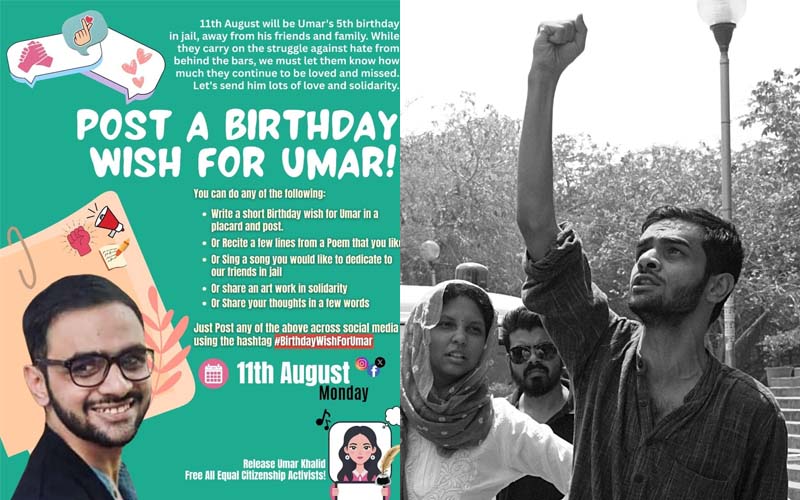 டெல்லியின் புகழ்வாய்ந்த ஜவஹர்லால் நேரு பல்கலைக்கழகத்தில் (JNU) முனைவர் பட்டம் பெற்ற மாணவரான உமர் காலித், டெல்லி கலவர சதி வழக்கில் செப்டம்பர் 13, 2020 அன்று கைது செய்யப்பட்டு சிறையில் அடைக்கப்பட்டார். பாசிச பாஜக அரசால் 2019-ல் கொண்டுவரப்பட்ட குடியுரிமை திருத்தச் சட்டத்துக்கு ( CAA) எதிராக வீரியமான போராட்டங்களை நடத்தியதால், புனைவுகளின் அடிப்படையிலான பொய்யான குற்றச்சாட்டுக்களின் கீழ் கைது செய்யப்பட்டு, எவ்வித விசாரணையுமின்றி ஆயிரம் நாட்களை கடந்தும் சிறையில் அடைபட்டுக் கிடக்கிறார். நீதிமன்றங்களும் அவருக்கு பிணை வழங்க மறுக்கின்றன.