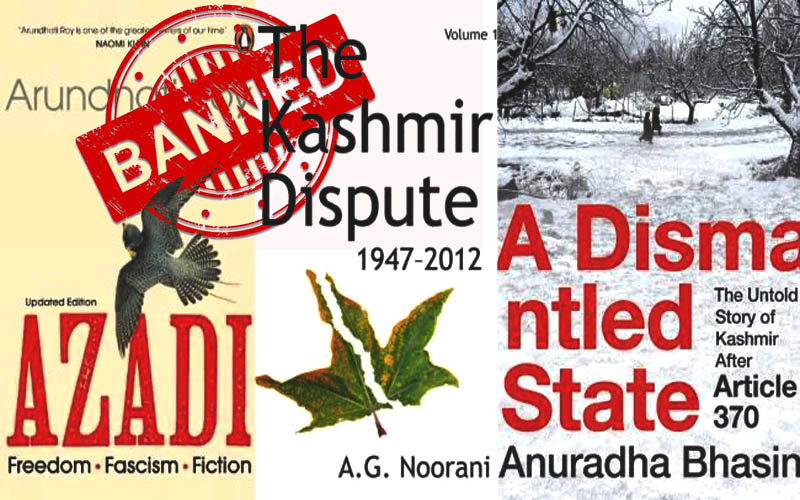 காஷ்மீரில் எழுத்தாளர்கள் அருந்ததிராய் எழுதிய ஆசாதி, மறைந்த எழுத்தாளர் ஏ.ஜி.நூரானியின் தி காஷ்மீர் டிஸ்பியூட், சுமந்திர போஸின் தி காஷ்மீர் அட் தி க்ராஸ்ரோட்ஸ் உள்ளிட்ட 25 நூல்களுக்கு தடைவிதித்துள்ளது காஷ்மீர் துணைநிலை ஆளுநரின் கட்டுப்பாட்டில் உள்ள உள்துறை.