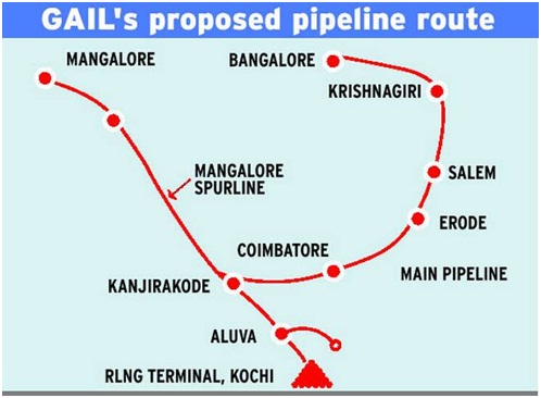 இத்திட்டத்தின் மொத்தத் தொலைவான 884 கி.மீ.-ல் தமிழகத்தின் இந்த 7 மாவட்டங்களில் மட்டும் 310 கி.மீ. தூரத்திற்கு இக்குழாய் பதிக்கப்பட இருக்கிறது. அந்தவகையில், 175 கிராமங்களிலுள்ள சுமார் 50,000 ஏக்கர் விளைநிலங்கள் நாசமாகும். 5000 விவசாயக் குடும்பங்கள் நேரடியாகவும் பல ஆயிரம் குடும்பங்கள் மறைமுகமாகவும் பாதிக்கப்படும்.கேரளத்திலிருந்து கோழிக்கோடு வழியாக மங்களூருக்கும் தமிழ்நாடு வழியாக பெங்களூருக்கும் குழாய் வழியாக எரிவாயு கொண்டு செல்லும் ரூ.3 கோடி மதிப்பிலான திட்டத்தை மத்திய அரசு வடிவமைத்தது. இதனடிப்படையில், தமிழ்நாட்டில் கோயமுத்தூர், திருப்பூர், ஈரோடு, சேலம், நாமக்கல், தருமபுரி, கிருஷ்ணகிரி ஆகிய 7 மாவட்டங்கள் வழியாக குழாய் பதிக்கும் பணியை கெயில் நிறுவனம் மேற்கொண்டது.