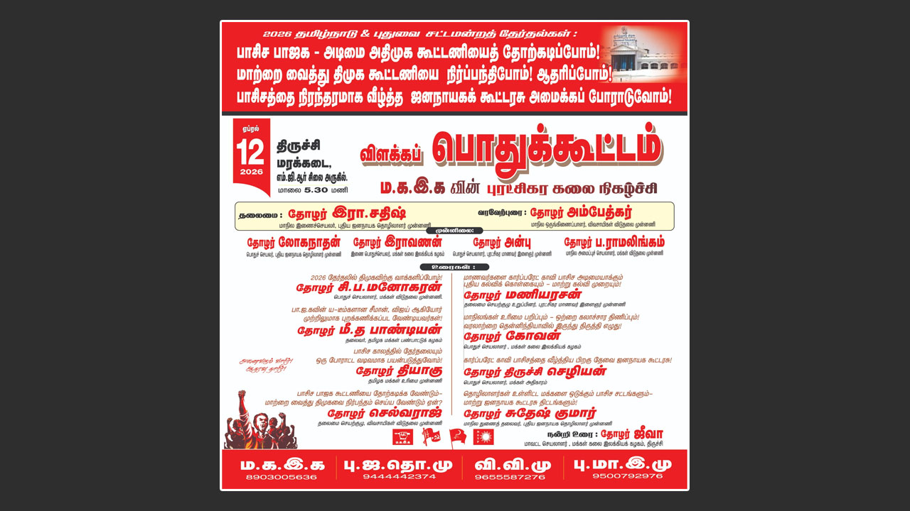 மாற்றை வைத்து திமுக கூட்டணியை நிர்ப்பந்திபோம்! ஆதரிப்போம்! பாசிசத்தை நிரந்தரமாக வீழ்த்த ஜனநாயகக் கூட்டரசு அமைக்கப் போராடுவோம்!