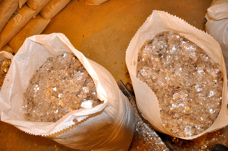 கலெக்டர் அரங்கத்தைப் பார்வையிட்டவாறே பேசினார். இருட்டிலே தவழ்ந்துபோய் குழந்தைகளும், பெரியவங்களுமா சேமிச்ச அந்த மைக்கா எல்லாத்தையும் பயன்படுத்தித்தான் மேக் அப் சாதனங்களை, முகப்பூச்சை, உடம்பு எண்ணெயை, உதட்டுச்சாயத்தைத் தயாரிக்கிறாங்க.