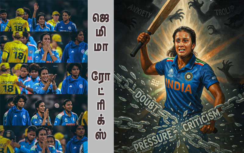 இந்தியாவில் சாதாரண குடும்பங்களில் விளையாட்டில் அவ்வளவு எளிதில் உயரத்தை எட்டி விட முடியாது. அதுவும் அனைத்து அதிகார மையங்களிலும் இந்து மதவெறியர்கள் நிறைந்துள்ள சூழலில் மத சிறுபான்மையினர் நிலைமையை சொல்லித் தெரிய வேண்டியதில்லை. விளையாட்டில் சாதிப்பது மட்டுமல்லாமல் மதவெறியர்களுடன் முட்டி மோதி பல்வேறு தடைகளை தாண்டி வந்தாக வேண்டும். அப்படி வந்தவர்தான் ஜெமிமா ரோட்ரிக்ஸ்.